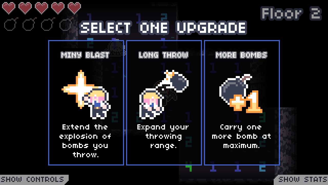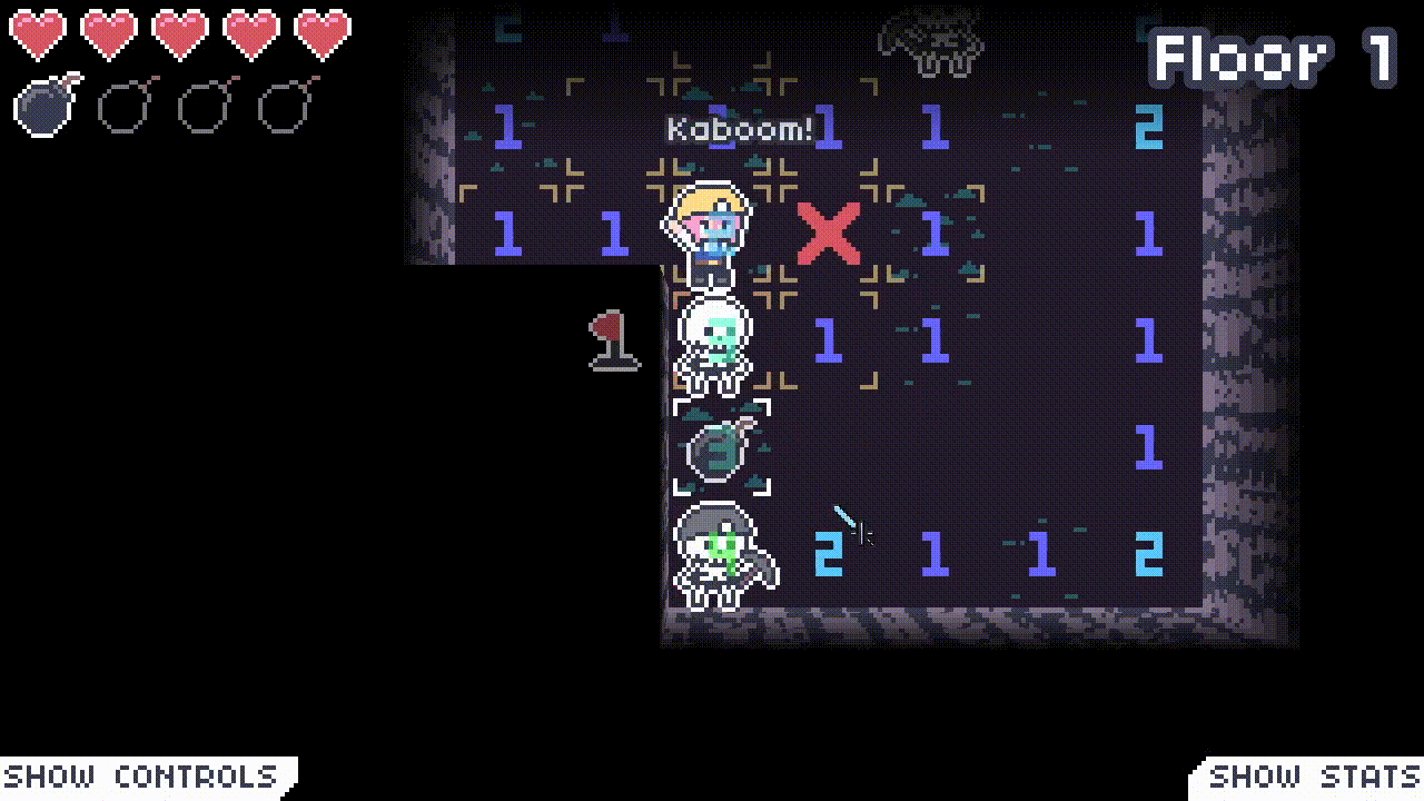 Miny Sweeper is a dungeon crawler, turn-based roguelike based on Minesweeper. Break walls selectively, carefully extract bombs from the walls, and throw them at those monsters!
